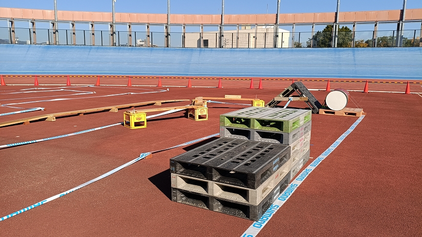 パレット、ドラム缶、木材などでセクションをつくりました。