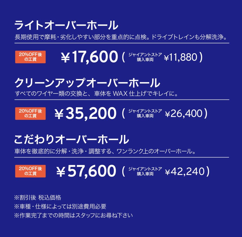 ※キャンペーン期間内にオーバーホールを依頼いただき、店舗にお持ち込みいただいた車体が対象