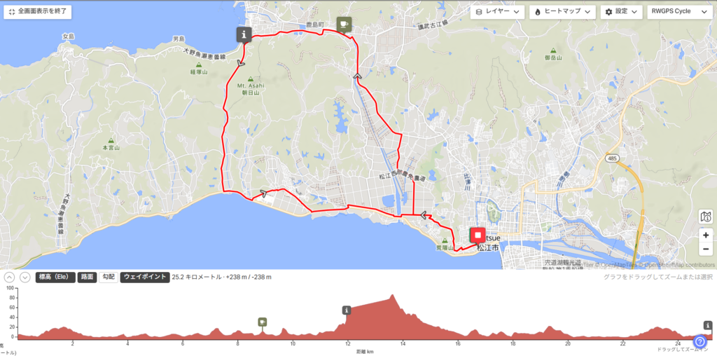 距離は約25km、全体的に平坦な道をゆったり走ります。