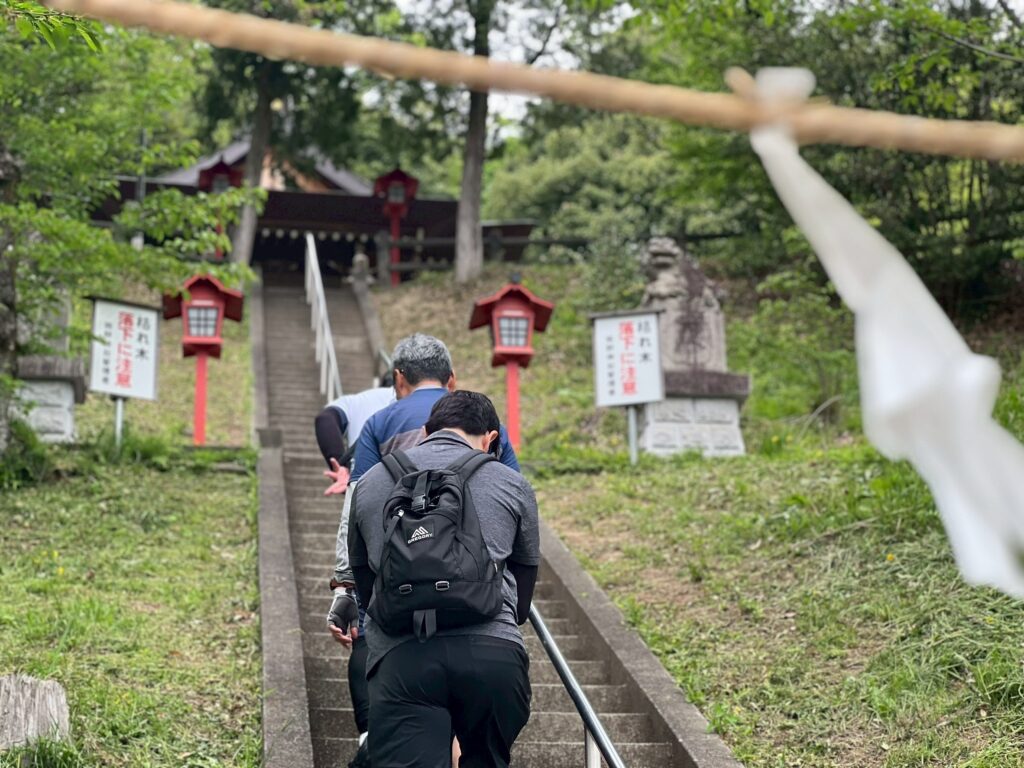 長い石段はビンディングでは酷だったかもしれませんが、交通安全を祈願しました。