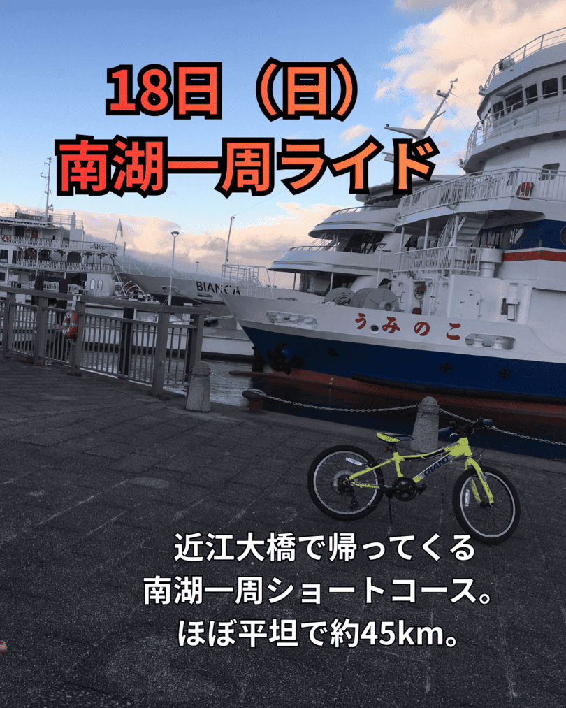 皆様、こんにちは! 1月17日の安土ライドに続き、翌18日(日)もライドイベントを開催いたします。 今回のテーマは、琵琶湖の南側を巡る「南湖一周(ナンイチ)」です。