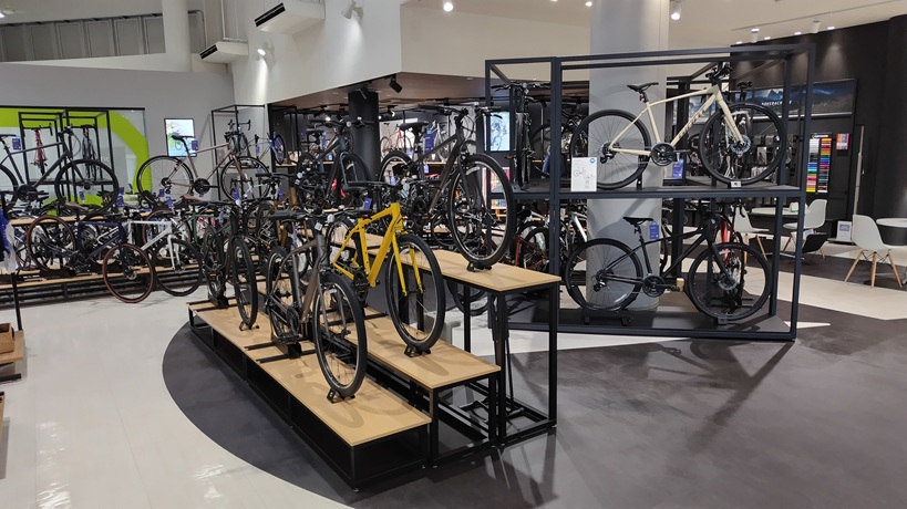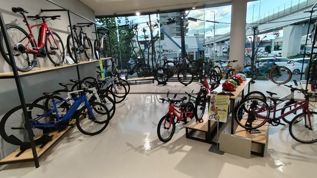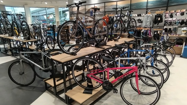 キッズバイクや気軽にお乗り頂けるクロスバイク、レースでも使用いただけるハイエンドロードバイクなど多数展示中です。(完売したモデルが見つかるかも)