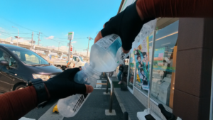 しばらく走り、飲んだり浴びたりしていたらボトルが空っぽに。
