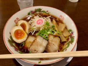 炙り豚バラチャーシューと煮卵がなんとも食欲をそそります!