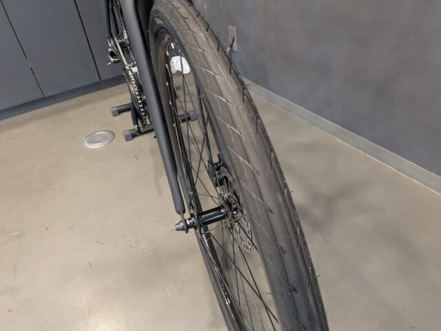 タイヤは、38mm幅で安定性と走破性を兼ね備えています。