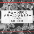 こんにちは。岡山店宮尾です。 12月はどんどんセミナーをやりますよ~。 今回はチェーンまわりのクリーニングや注油などのセミナーになります。 ご自慢の自転車をきれいにして新年を迎えませんか? ・・・