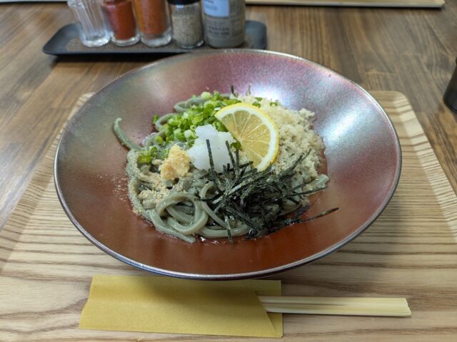 緑の麺はヨモギです。すごくおいしかったです!
