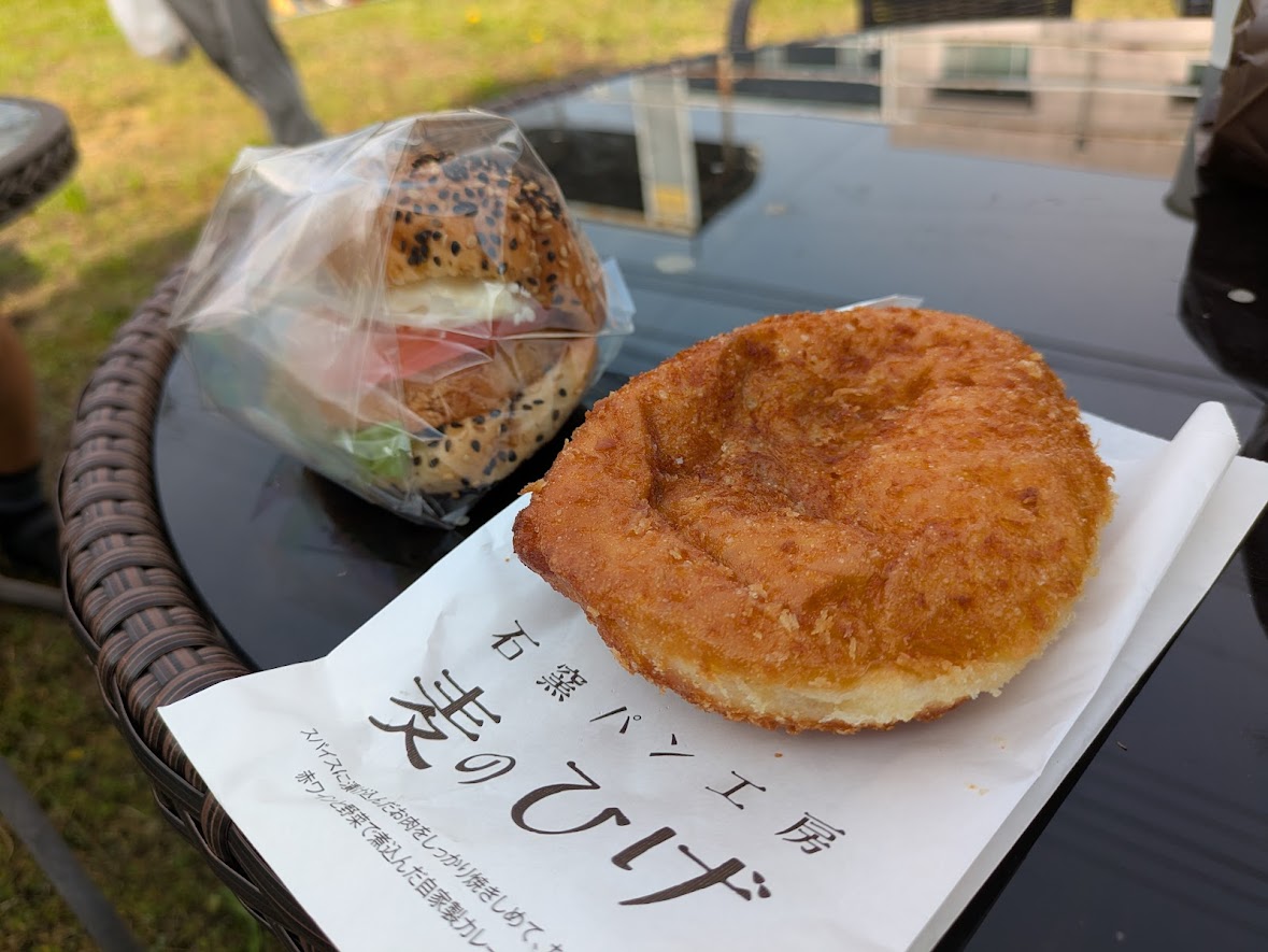 朝からたくさんのお客さんで賑わってます。お店に併設されているベンチでいただきます。