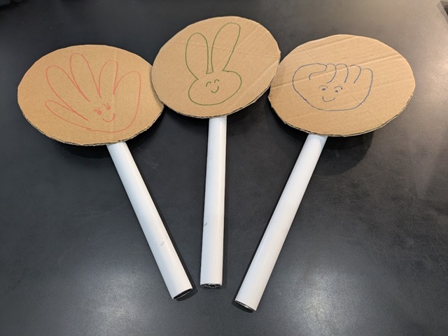 店長お手製のジャンケン札を使ってグループ分け。グーとパーとチョキに分かれました。