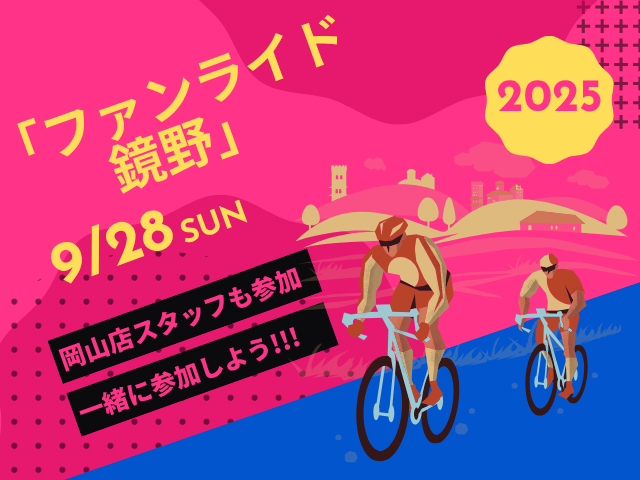 9月28日(日)に開催される「ファンライド鏡野」にはお店を休んで、お店のスタッフ永田・大倉・宮尾で参加します。