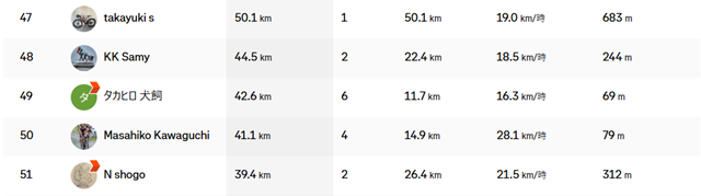 ロングライド 49位 / タカヒロ 犬飼様 42.6km