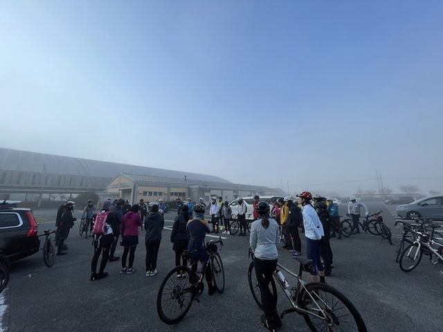 集合場所のわけまろパークは、すごい霧。この時点では寒かったです。
