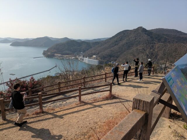 お昼ごはんを後で食べるグループは、食前に景色のいいところにのぼります!
