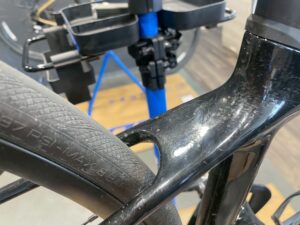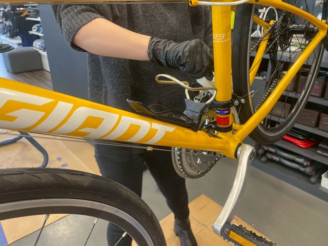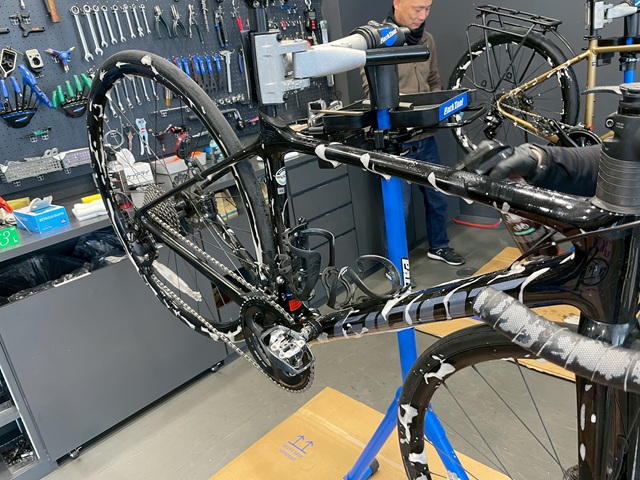 BIKE WASHを使用してフレームやホイールの掃除です。