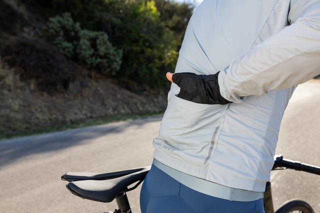 Liv Cefira Pro Wind Jacketは110gと超軽量で、コンパクトに折り畳んでジャージのバックポケットに忍ばせることができるポケッタブル仕様のウィンドジャケット。