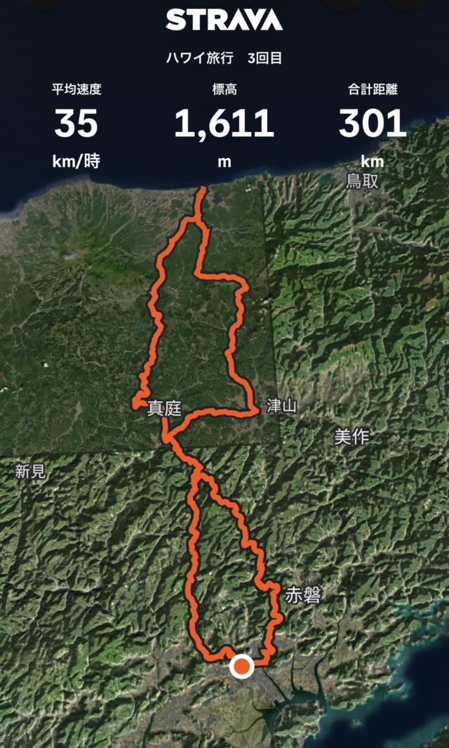 津山市内でこのまま帰ると距離が足りないことに気付く。。