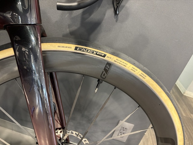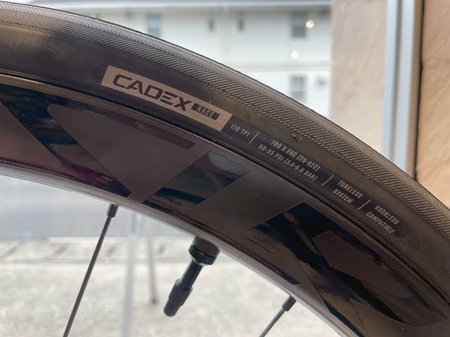 CADEX 50 ULTRA DISC TUBELESSにCADEX AERO COTTON TIREを入れています。