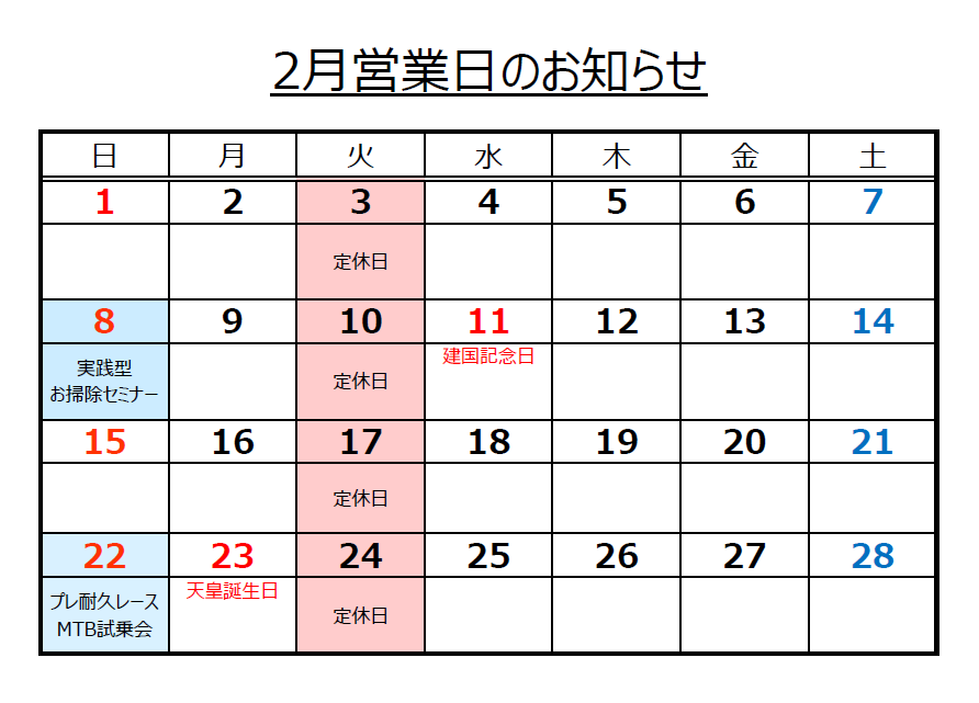 2月のスケジュールです。