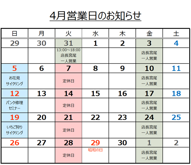 4月のスケジュールです。