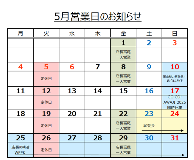 ・5月25日(月)~31日(日) 店長の朝活WEEK.