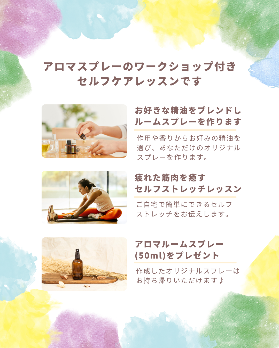 アロマオイルを使ってのワークショップとセルフケアレッスンを開催したいと思います!!