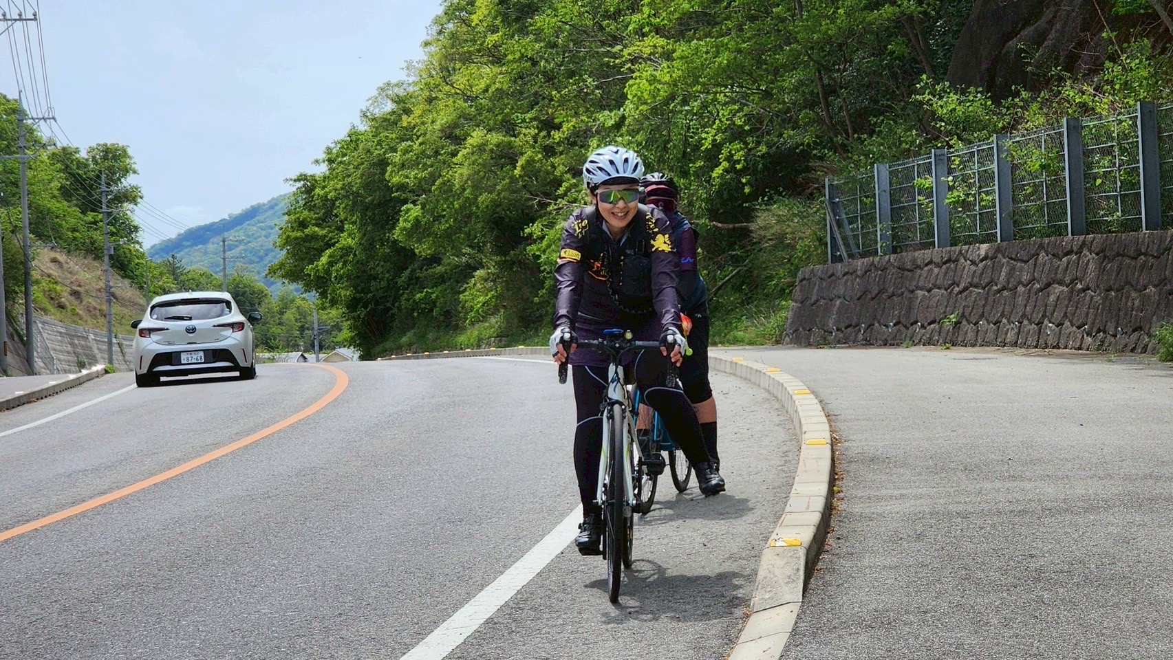 海岸線は気持ちよく走れますが、少し山側に入ると坂です。