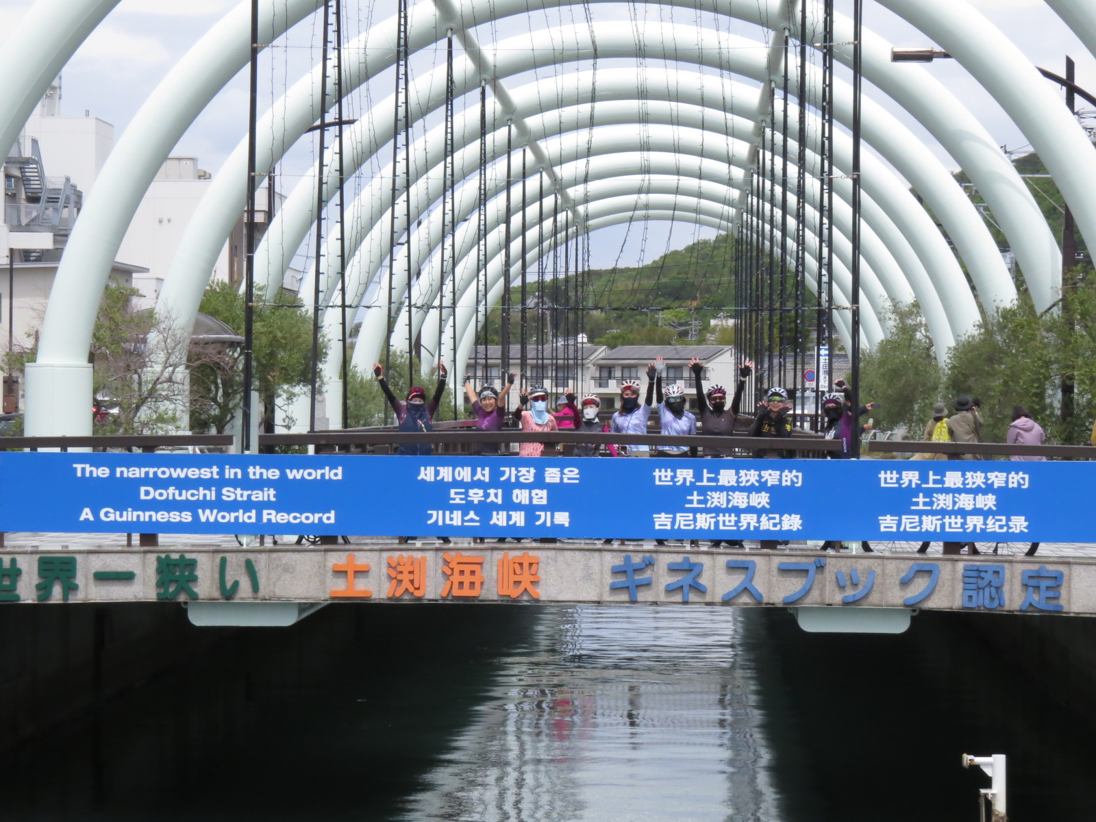 世界一狭い土淵海峡で記念写真を撮ったら、通行証をもらいに行くことに。
