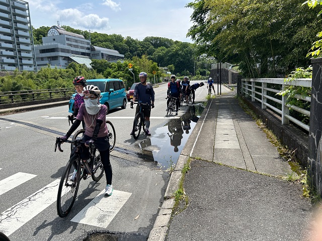 サイクリング途中、信号で止まったあいだにもおしゃべりに花が咲きます。