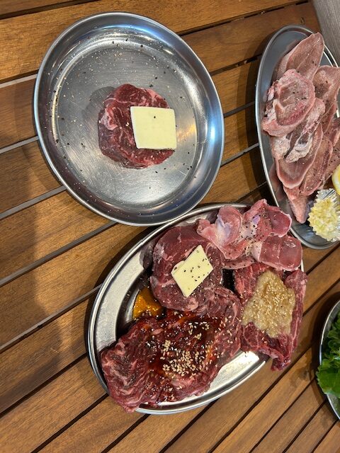 ありがたや~と、焼かれたお肉をお皿に入れてもらって、せっせと食べます。