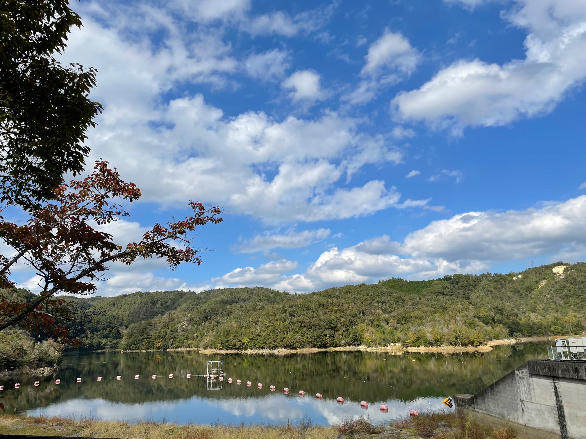 復路はダム沿いをゆるっと上りますが、川もありマイナスイオンを