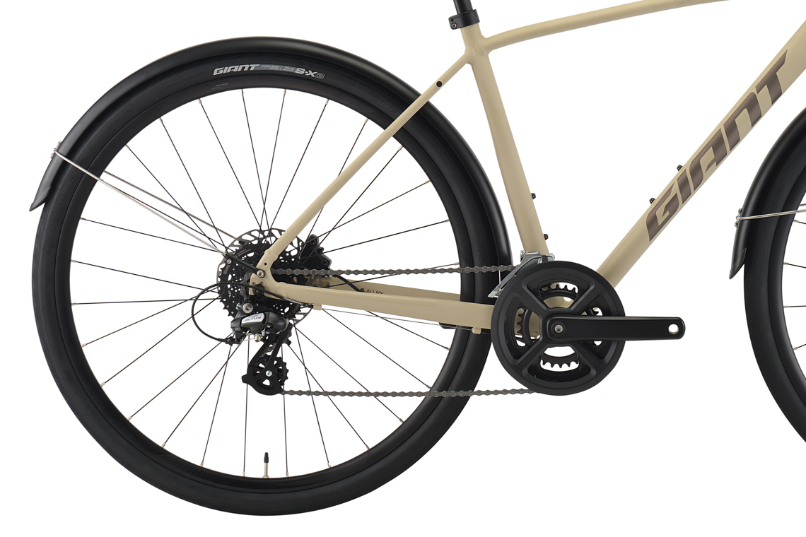 Escape Xは、機能性とデザイン性を兼ね備えたクロスバイクです。すっきりとした見た目とメンテナンス性を両立する内装ケーブルルーティング、天候を問わず安定した制動力を発揮する油圧ディスクブレーキを採用し、コンディションを問わず安心で快適なライドをサポートします。さらに専用設計のフェンダー(別売)を装着すれば、雨の日の通勤や日常使いでの水はねや泥はねを抑えることができます。