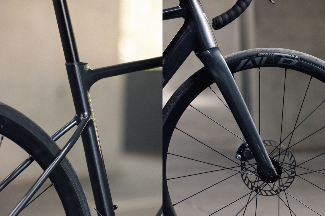 ▲左:路面からの衝撃を緩和するGIANT独自の「D-Fuse」シートポスト / 右:Propel譲りのエアロ形状を持つフロントフォーク