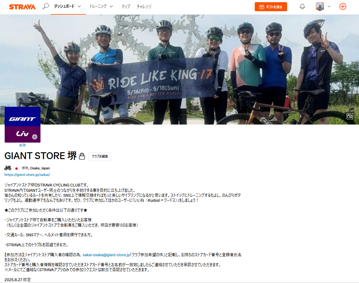 ・GIANT STORE堺のSTRAVA CLUB↓クリック↓