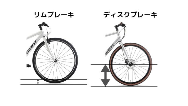 同じモデルで比べると、リムブレーキ搭載のバイクの方が価格がお求めやすくなります。