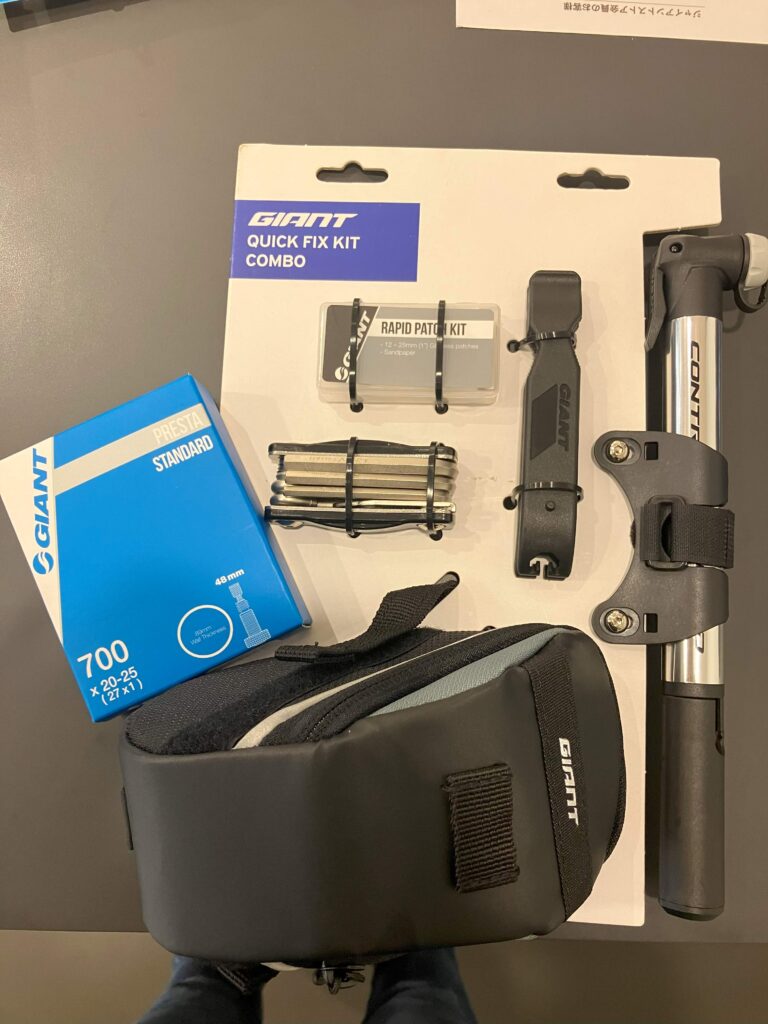 万が一のパンクに備えてパンク修理キットと予備チューブも!