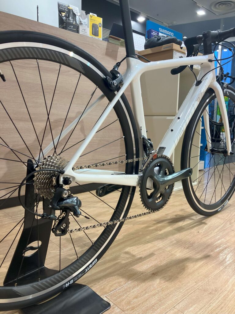 第9世代のTCR ADVANCEDグレードの車体です。旧モデルと侮ってはいけません。第9世代から重量剛性比のみならず空力性能にも力を入れ始めていましたので、本車体もオールラウンドバイクとしては100点の空力性能と軽量性・快適性を兼ね備えたバイクとなっています!