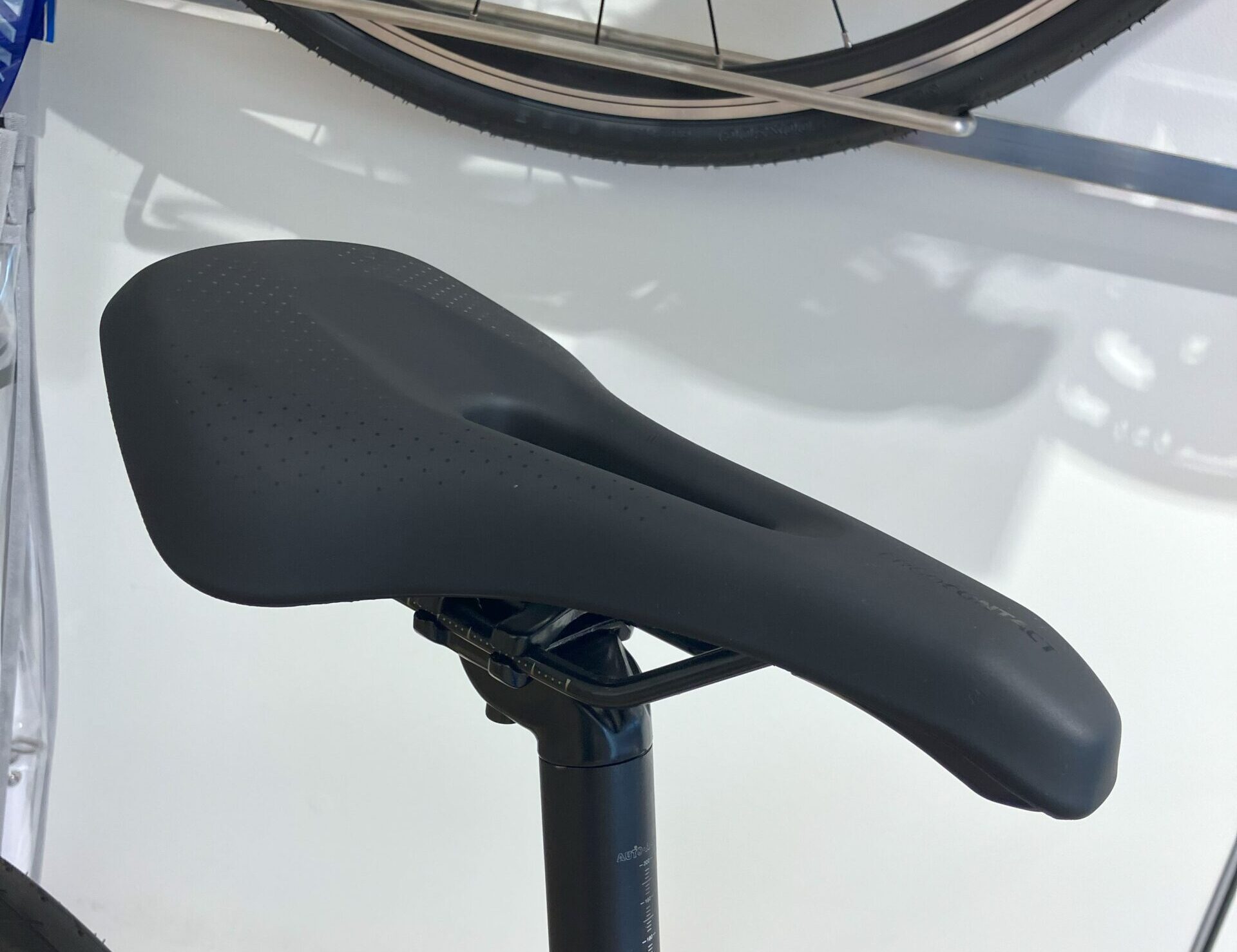 スポーツバイクに付属するサドルの中ではかなり柔らかく、初めての方でもお尻が痛くなりにくいです。中央に空いた穴も大きいので、痛みが出やすい会陰部を守ってくれます。