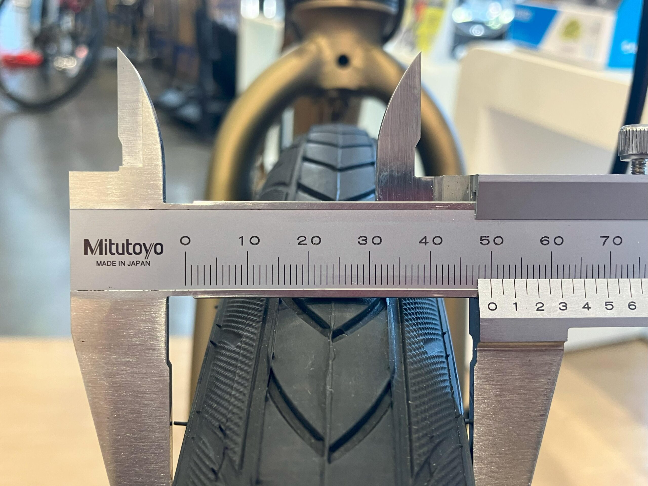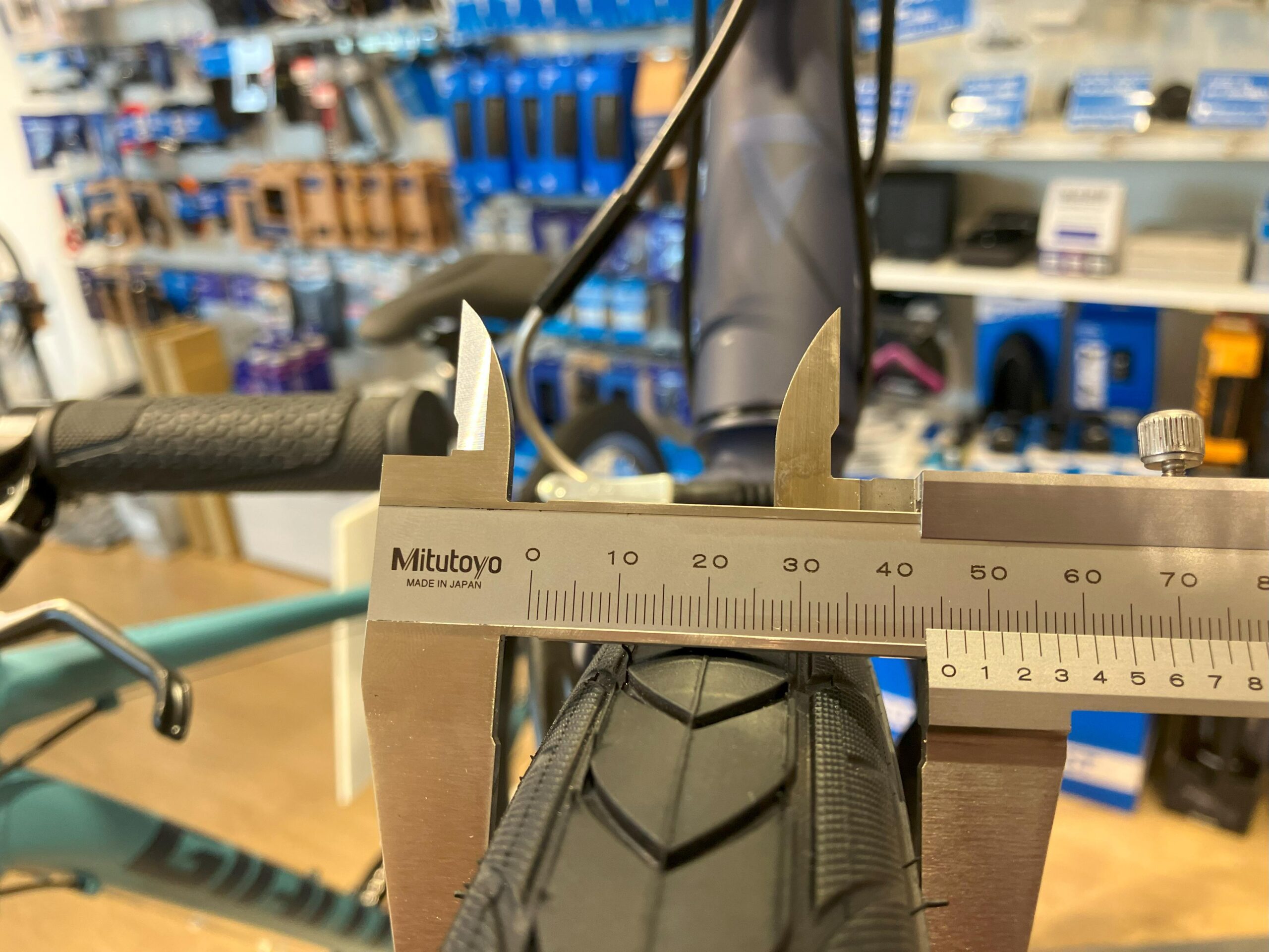 タイヤもリムブレーキのグラビエと同じものを使用していますが、こちらは実測約5cm!タイヤ重量は同じまま幅広で一層安定した走行ができるとってもおすすめなモデルです😎