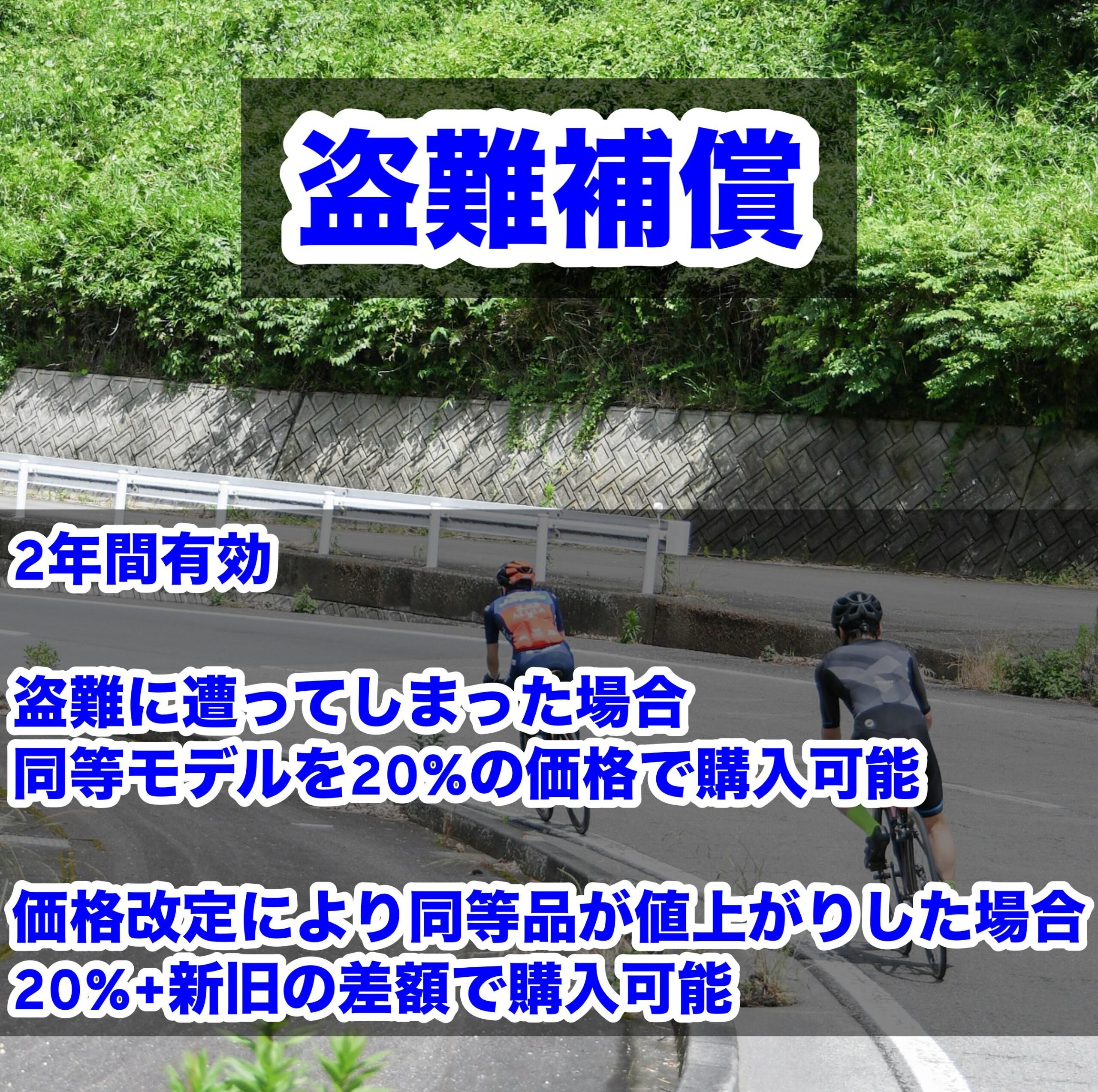 盗難補償:盗難に遭ってしまった場合購入車体と同等品を20%の価格でご購入いただけます