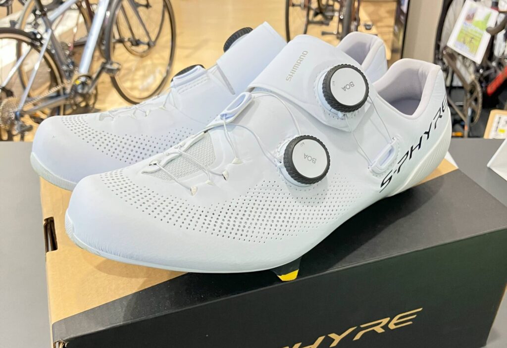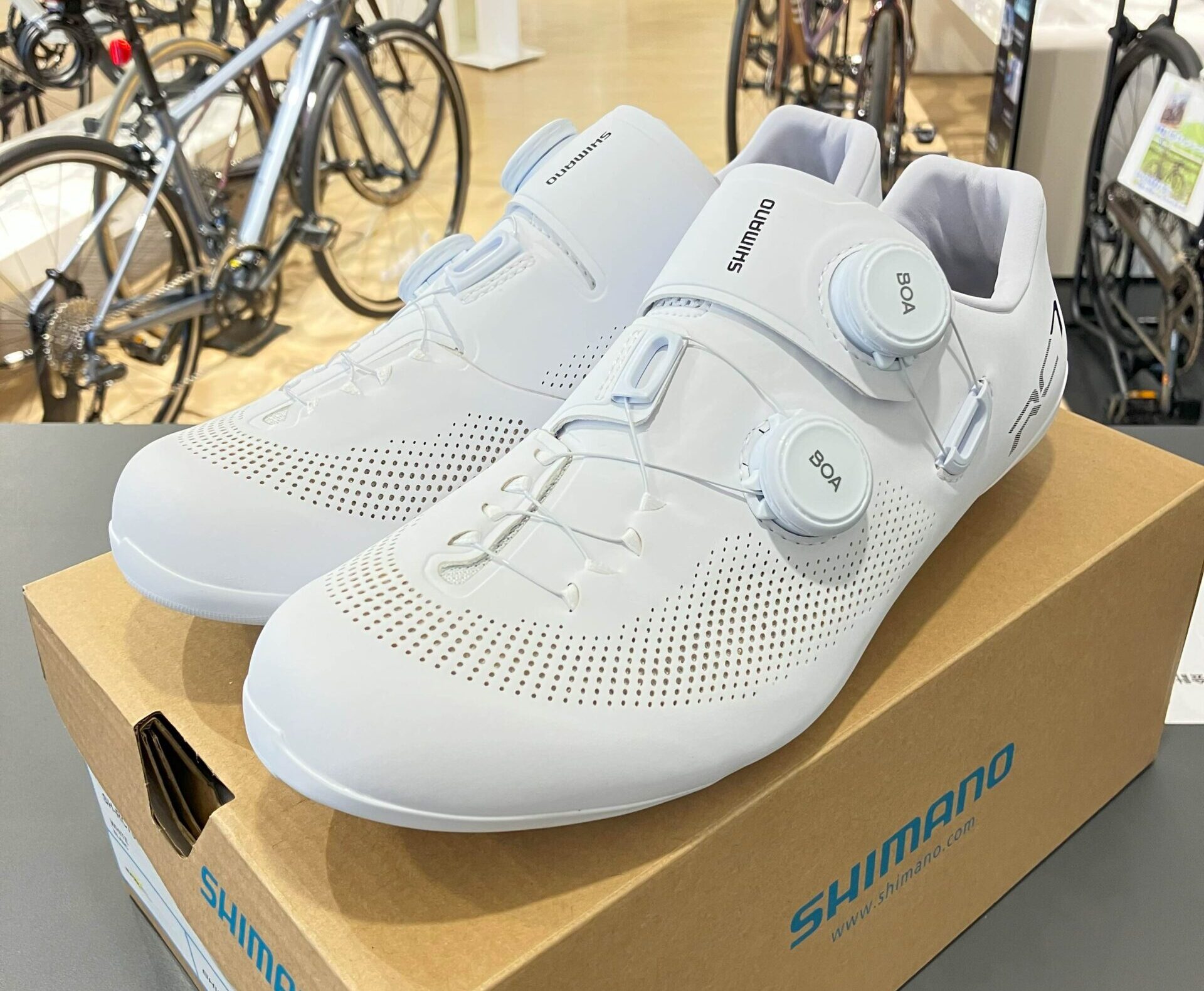 泣く子も黙る正真正銘ハイエンドシューズ!超高剛性のソール(ソール剛性:12)で踏んだパワーを余すことなくペダルへ伝達し、速度へ変換してくれます。店頭ではホワイトカラーをご覧いただけます。(在庫はないため各サイズお取り寄せとなります)