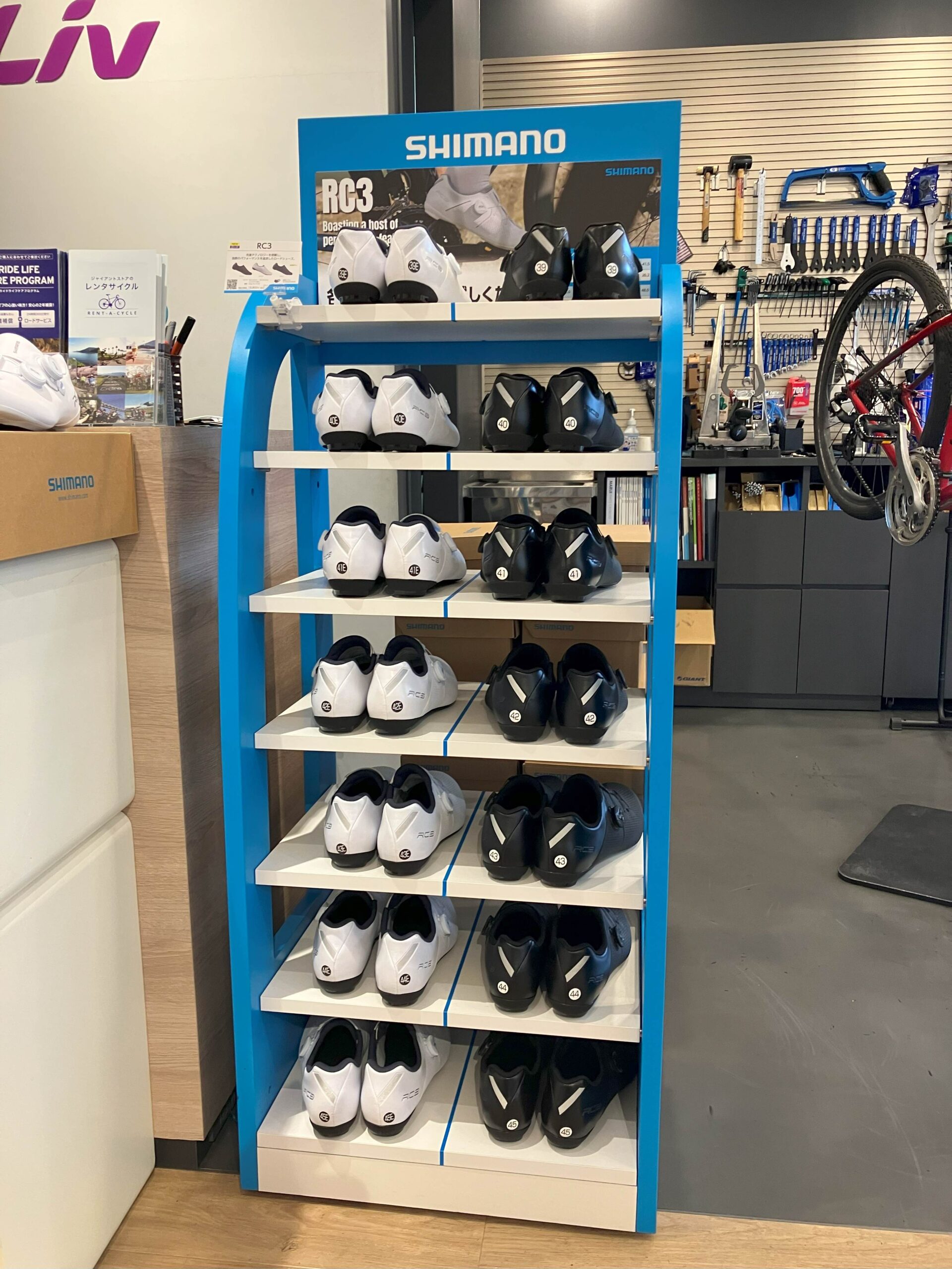 ジャイアントストア高松ではシマノシューズのRC302を39サイズ(24.5cm)から45サイズ(28.5cm)までご用意しておりますので、実際にサイズを確かめてからご購入いただけます。初めての方にも安心です。