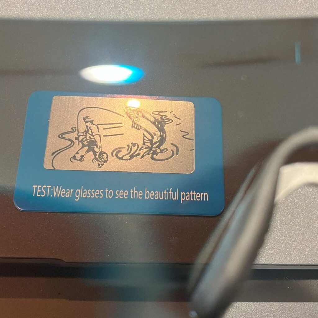 青色の台紙には魚の絵がうっすら溝で彫られています。レンズを通さないとあまり見えないのですが、Polarvisレンズを通すと光の反射を抑えつつ、溝がくっきりと表示され魚の絵がはっきり見えます。たったこれだけ…?と思われる方もいらっしゃるかもしれません。しかし、スポーツバイクというスピードが出る乗り物で路面の小さな段差や亀裂を遠くから把握できるだけでライドの安全性は大きく向上します。単に風や紫外線から目を守るだけでなく、路面の状況も把握しやすくなるというとっても便利なレンズなんです😎