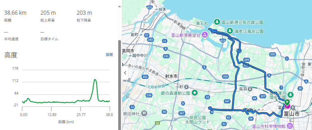 最後すこしヒルクライムしてジャイアントストア富山まで戻ってきます。