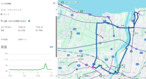 まず岩瀬へ向かい、その後神通川を渡り南下、喫茶店で休憩ののち更に南下し呉羽山からゴールを目指します。