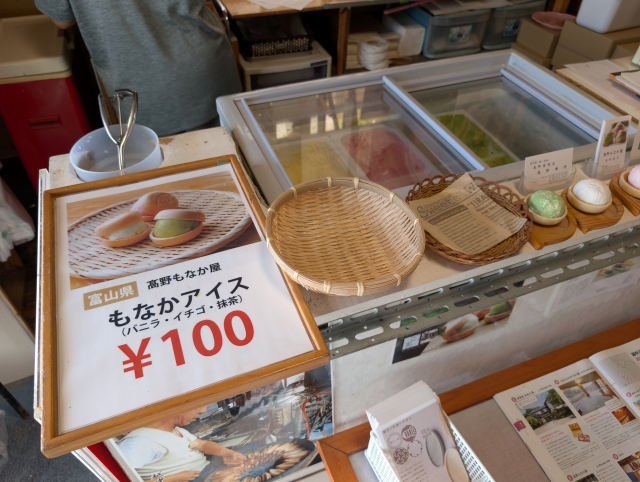 もなかアイスは、イチゴ、抹茶、バニラの三種類!一個¥100と激安