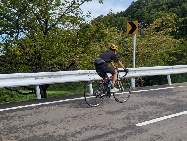 登りはそれぞれのペースで走ります