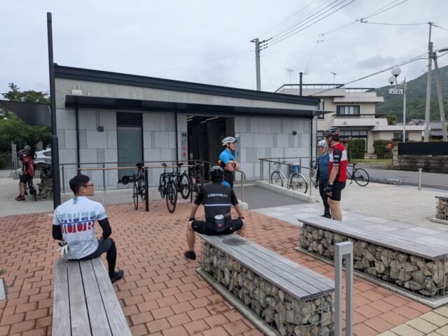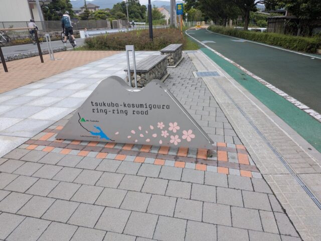 下りきったところにある筑波山駅跡の休憩スポットはサイクリストに優しい造りで、ベンチや撮影スポット、トイレも非常に綺麗。