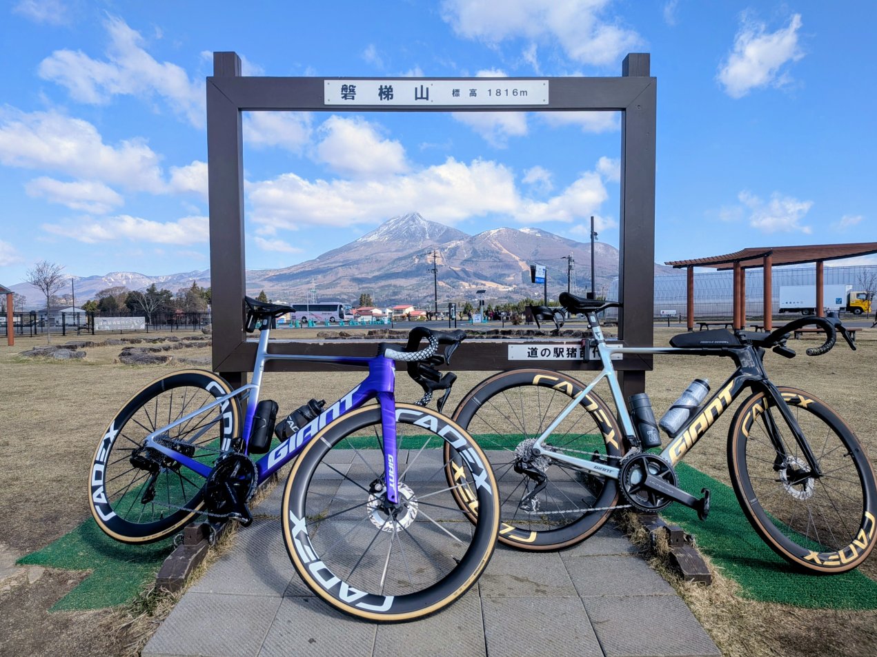 スタート地点は道の駅猪苗代。快晴。新旧PROPEL。