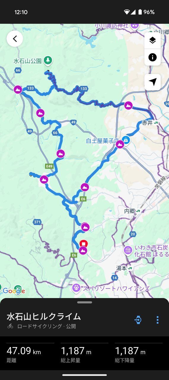つくばの自宅からなので軌跡が微妙ですが、約60kmで1500m上りました。