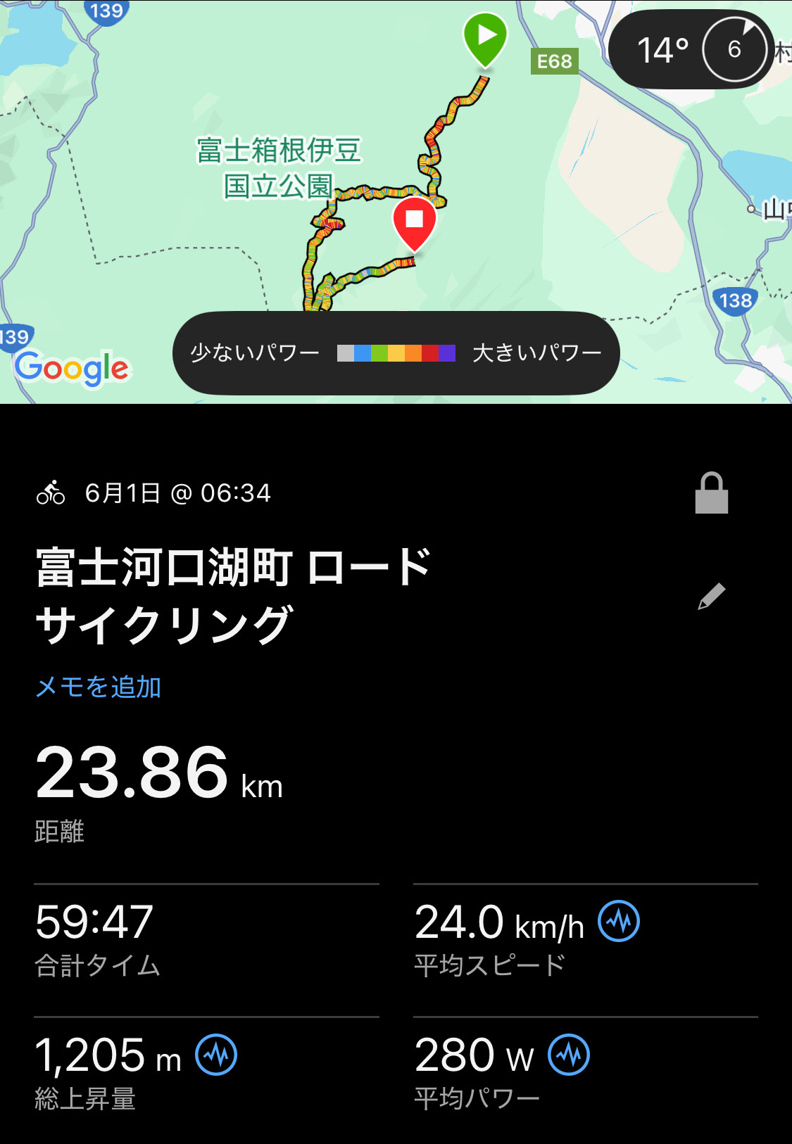下山は安全のために30km/h以下での走行となり、40-50分かかります。